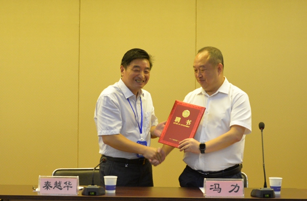 校企战略合作框架协议签署后,秦越华为冯力先生颁发客座教授聘任证书,并共同为哈尔滨维科生物技术有限公司、徐州生物工程职业技术学院产学研与人才培养合作基地揭牌。
