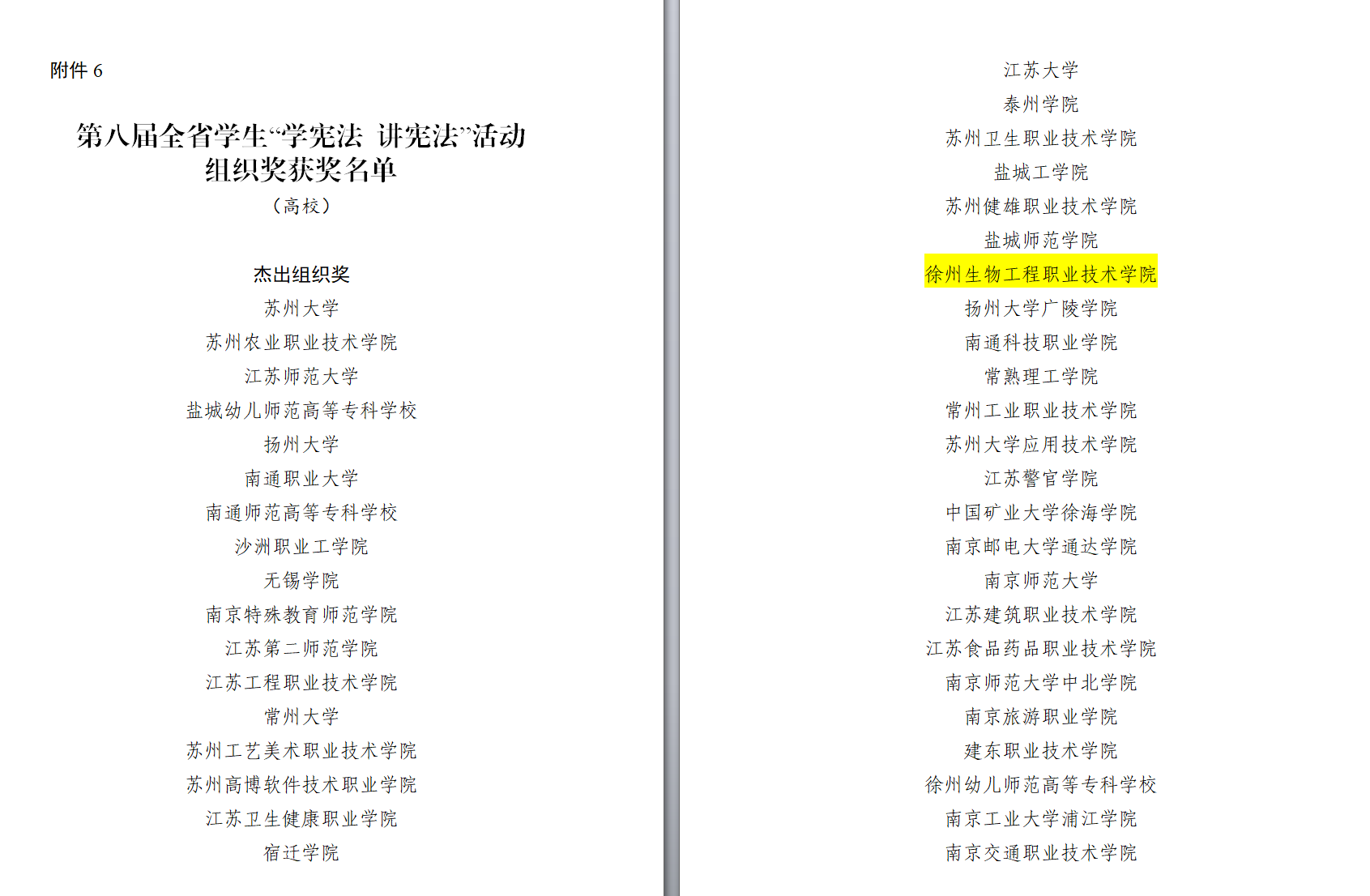 近日,江苏省教育厅公布了第八届全省学生“学宪法 讲宪法”活动表彰名单,我校荣获“杰出组织奖”。至此我校已经连续两年获得此殊荣,为全力推进依法治校奠定了良好的基础。