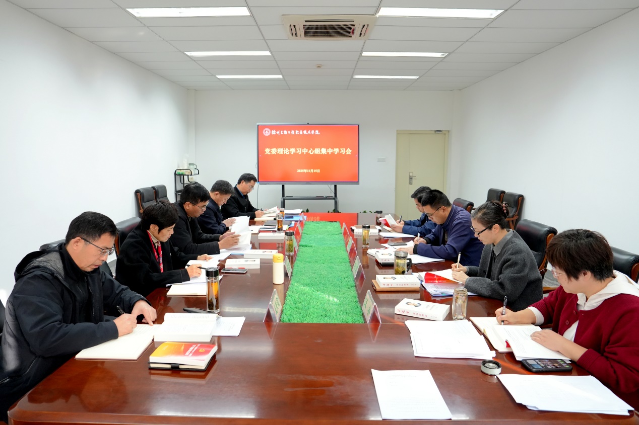 11月15日上午,我校举行党委理论学习中心组集中学习会,深入学习党的二十届四中全会精神、《习近平谈治国理政》第五卷和《中国共产党思想政治工作条例》。校党委理论学习中心组成员参加会议,校党委书记徐锋主持会议。徐锋强调,要深刻学习领会党的二十届四中全会的重大意义,深刻领悟“两个确立”的决定性意义,增强“四个意识”、坚定“四个自信”、做到“两个维护”,扎实推动我校的学习宣传贯彻全会精神走深走实。要提高站位,学深悟透全会精神,深刻领会党中央关于发展形势的基本判断,深刻把握以中国式现代化全面推进强国建设、民族复兴伟业的时代使命和历史方位,深刻领会“十五五”时期经济社会发展的重要意义、指导思想、重大原则、重大战略任务和根本保证,切实把思想和行动统一到党中央决策部署和上级工作要求上来,确保我校一方面高质量完成全年目标任务,一方面科学谋划好学校“十五五”事业发展规划。